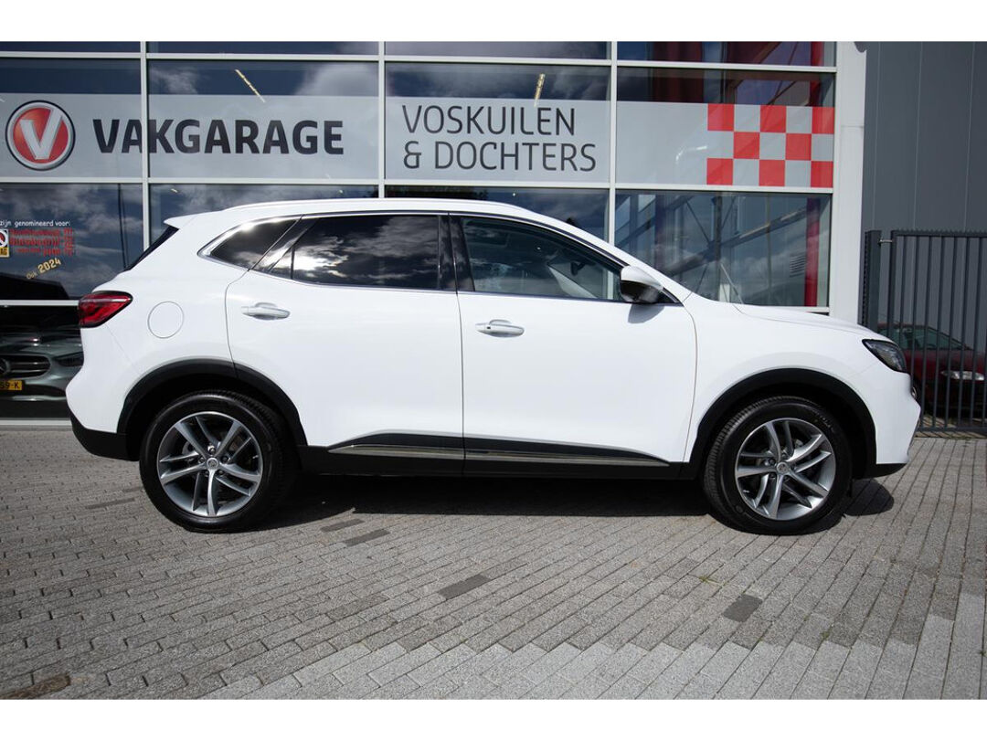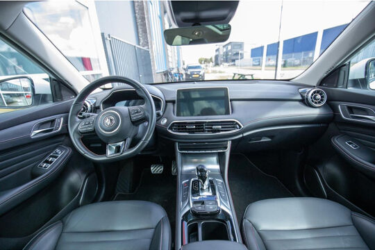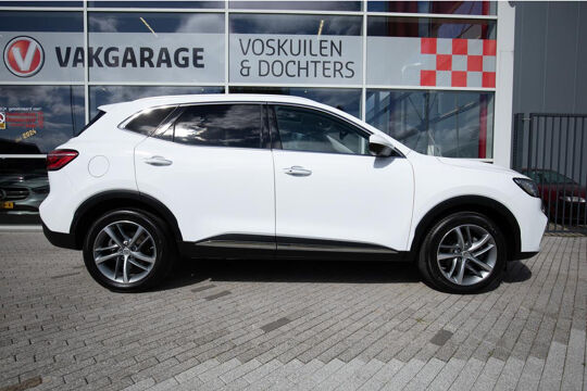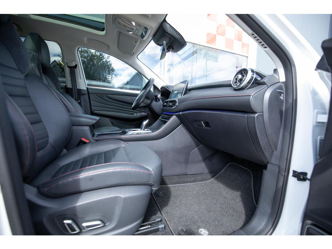 The MG EHS Plug-in Hybrid is the perfect combination of luxury, efficiency, and versatility. This stylish SUV offers performance and luxury comparable to the Jaguar E-Pace and Mazda CX5 and features a full leather interior, ensuring a refined and comfortable driving experience. The panoramic roof allows you to enjoy a wonderful amount of natural light and gives the vehicle a spacious feel. Thanks to its plug-in hybrid technology, you can drive extremely economically, with a specified electric range of 52 kilometers. This makes the MG EHS ideal for both short and long journeys, and you can easily charge the car with your own solar panels.